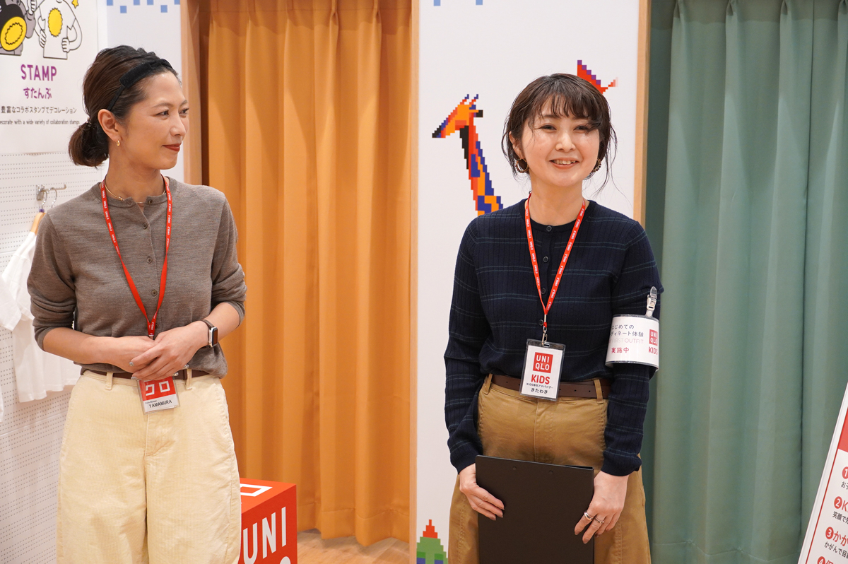 キッズ専任スタッフによる子どもに寄り添った接客を強化。「キッズ専用試着室」のほか、自分だけのアイテムがつくれる「UTme!」や、オンラインで注文した品を無人で受け取れる「商品受け取りロッカー」を新設している。子どもたちが無料で参加できる「はじめてのコーディネート体験」イベントも定期的に実施するほか、近隣にある東京大学との服を通じた学びに関する取り組みも行う。