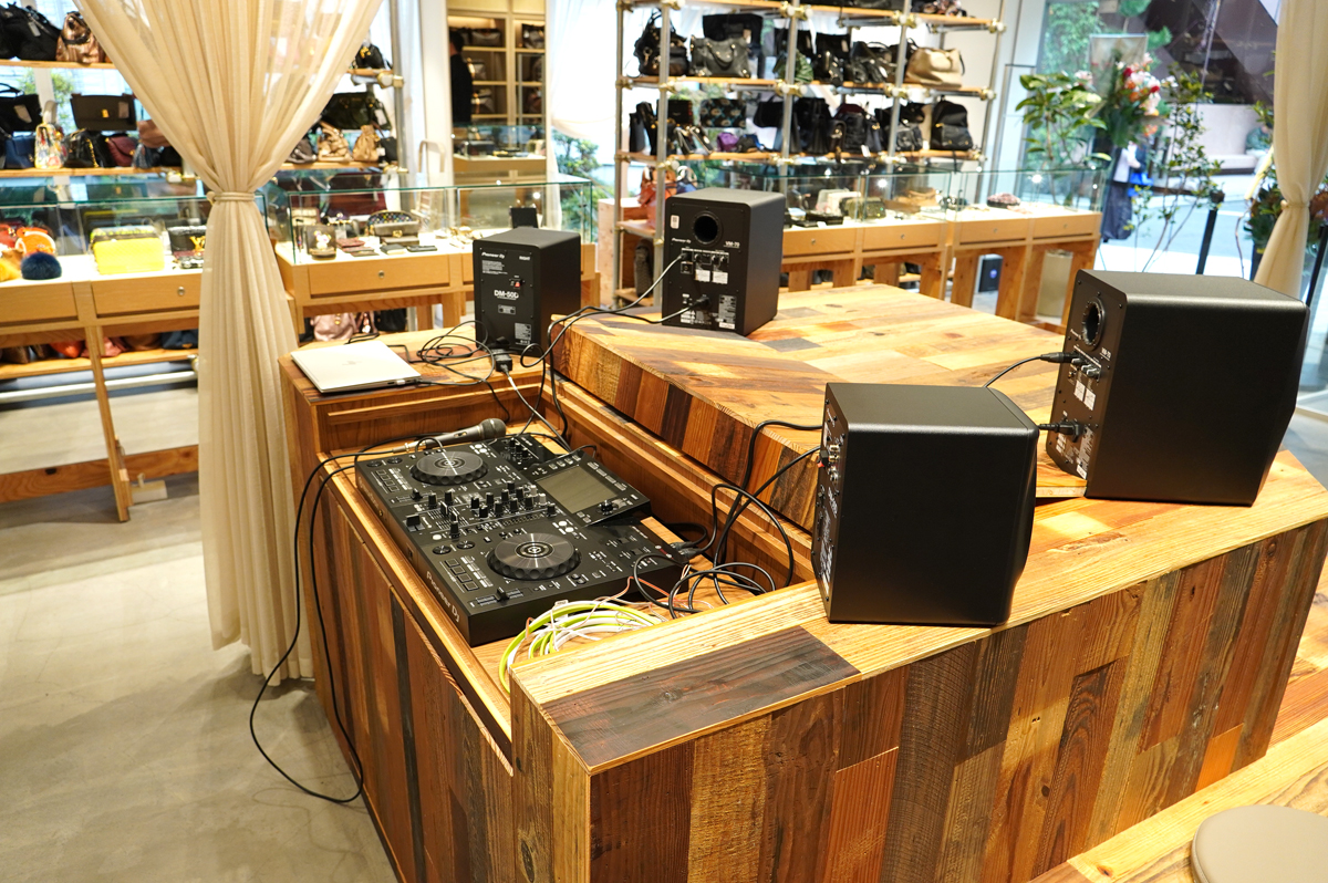 また、店舗中央のディスプレイでは、トレンドや季節に合わせて展示する内容を変える。顧客がゆっくりくつろぐベンチとしても利用可能。DJブースも完備しており、イベントの開催時には空間を彩る中心となる。