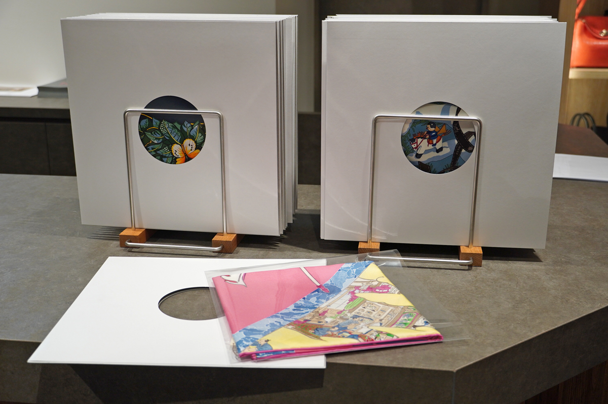 <レコードに見立てたスカーフの展示>