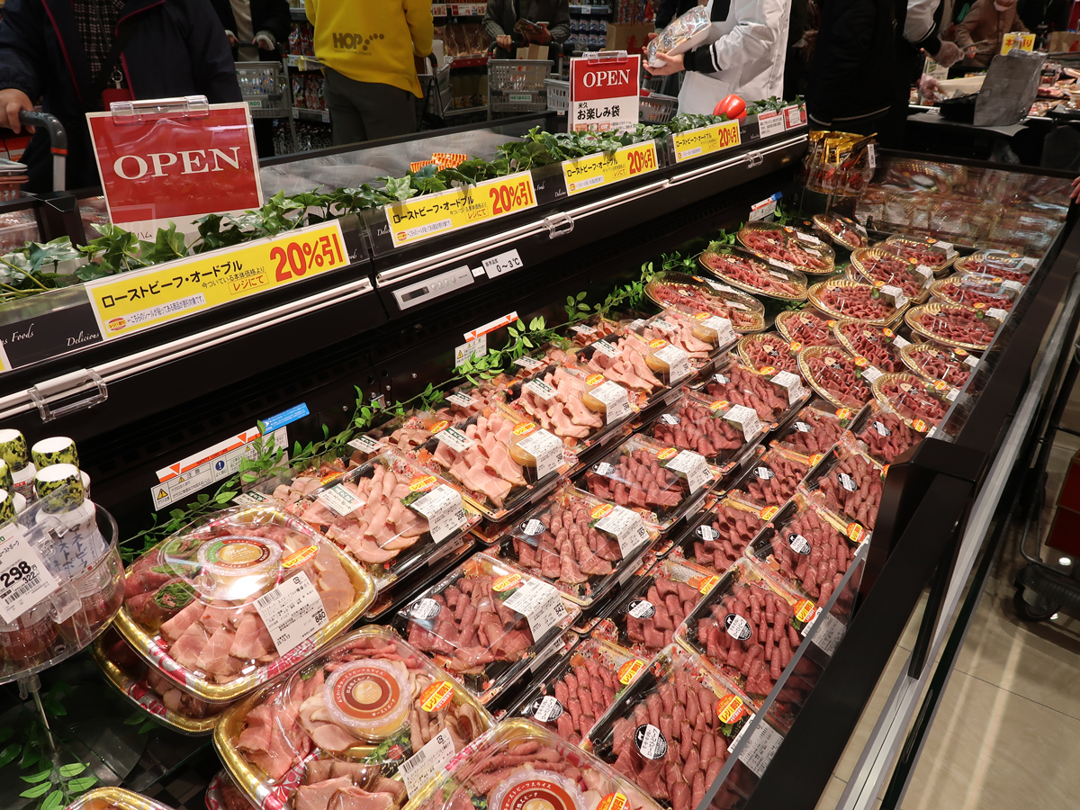 他社との差別化について、畑心店長は「デリカと生鮮3品で、平和堂らしさを出す。デリカは特に夕方の商品を強化する。商圏は単身世帯が少なく、子育ての終わった人など、40~50代、2人以上の世帯が多い。ローストビーフやすし、カットフルーツなど週末のぜいたく向けに充実させた。価格も、生鮮3品ともに『店長厳選得価』を打ち出し、稲沢エリアでの認知度を上げていく」と話す。