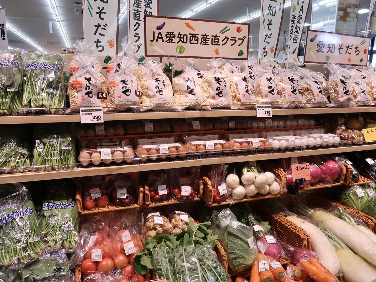 青果は、JA愛知西産直クラブの地場野菜コーナーを設置。「店長厳選得価」で価格に敏感な層にもアピールする。
