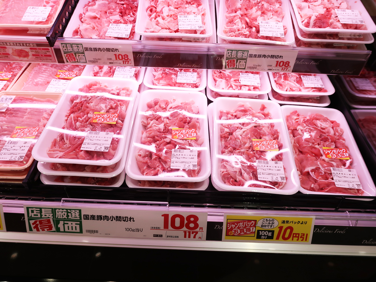 精肉は、豚こまなど頻度品の大容量商品のほか、2人以上の世帯に多すぎず、少なすぎない適量の商品も取り扱う。