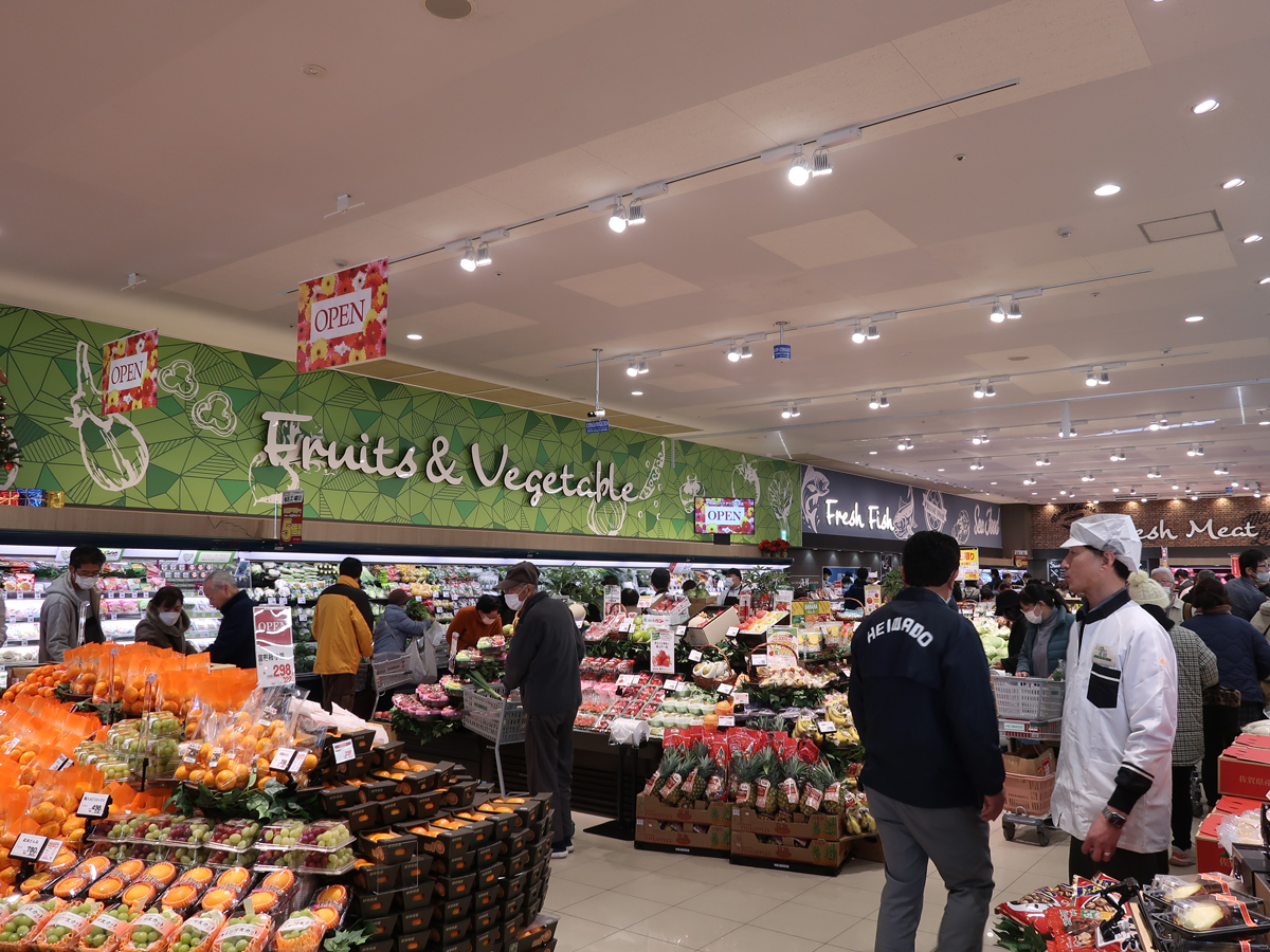 食料品の内訳は、加工食品4285品、日配1701品、生鮮食品計1372品(精肉301品、鮮魚320品、青果451品、デリカ300品)。