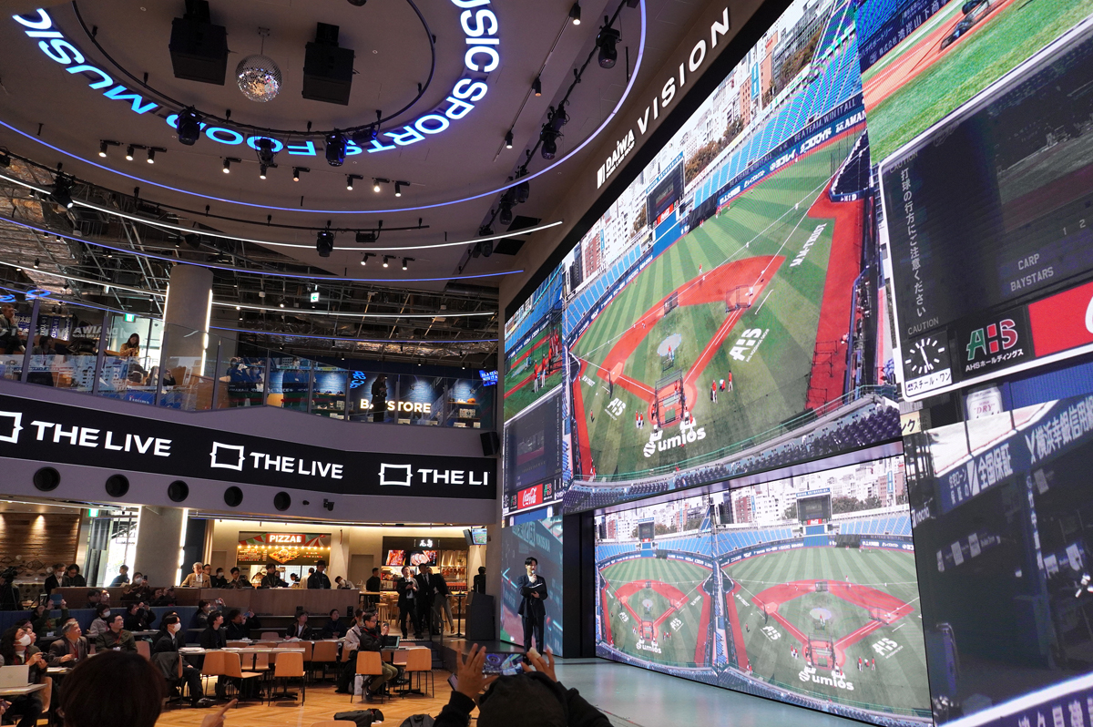 街区の中心にある施設「THE LIVE(ザ ライブ) supported by 大和地所」は、横浜DeNAベイスターズが企画運営する日本最大級の常設型ライブビューイングアリーナ。館内中央に幅約18m、高さ約8mの大型LEDビジョンが設置されており、野球を始めとしたさまざまなスポーツの試合や音楽ライブ等のエンターテインメントコンテンツに熱狂しながら飲食を楽しめる。