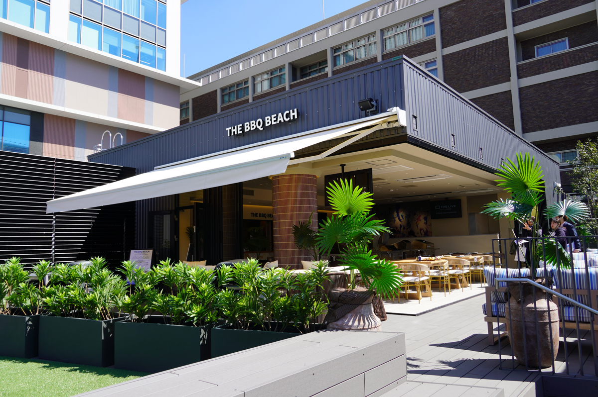 3階にはOICグループのタイシステムが展開する都市型BBQ場「THE BBQ BEACH」もオープン。店内とテラス席、合わせて58席を備える。店内に3台のモニターを設置することでBBQとともにスポーツ観戦もできる環境を整えた。「横浜DeNAベイスターズ」とのコラボレーションメニューの提供も予定している。