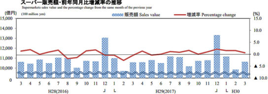経済産業省が発表した2018年3月の商業動態統計速報によると、商業販売額は42兆2470億円(前年同月比2.2%増)となった。