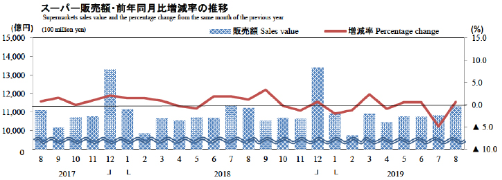 経産省/8月の商業動態統計、小売業は2.0%増の12兆540億円