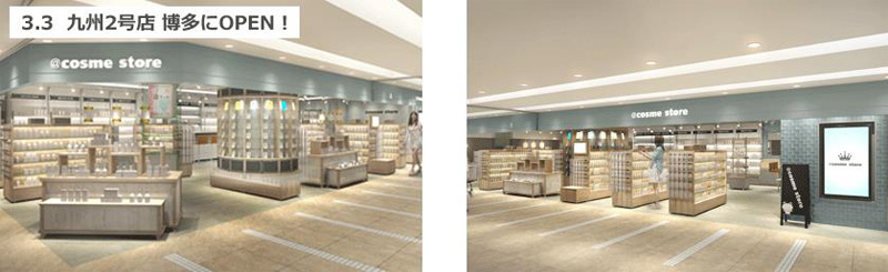九州では2店目の出店で、九州の玄関口である博多に店舗を出店することで、より多くの九州の人に「@cosme Store」を知ってもらうことを目指す。