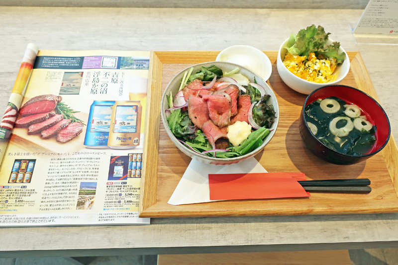 ギフトカタログに掲載する食材を、実際に使用したメニューや、熊本県菊池産 えこめ牛のローストビーフ丼(税込1700円)、北海道産 鮭 純米酒粕漬け焼き定食(1200円)、秋田稲庭うどん かけうどんかきあげ丼定食(900円)など5つのメニューを提供する。