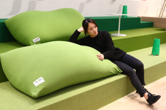 また、店内は抹茶色のグリーンを基調としており、寝そべれるソファ席や抹茶の香りがするクッションなどのリラックスアイテムを多数配置するなど、日頃のストレスを癒せる落ち着いた空間になっている。