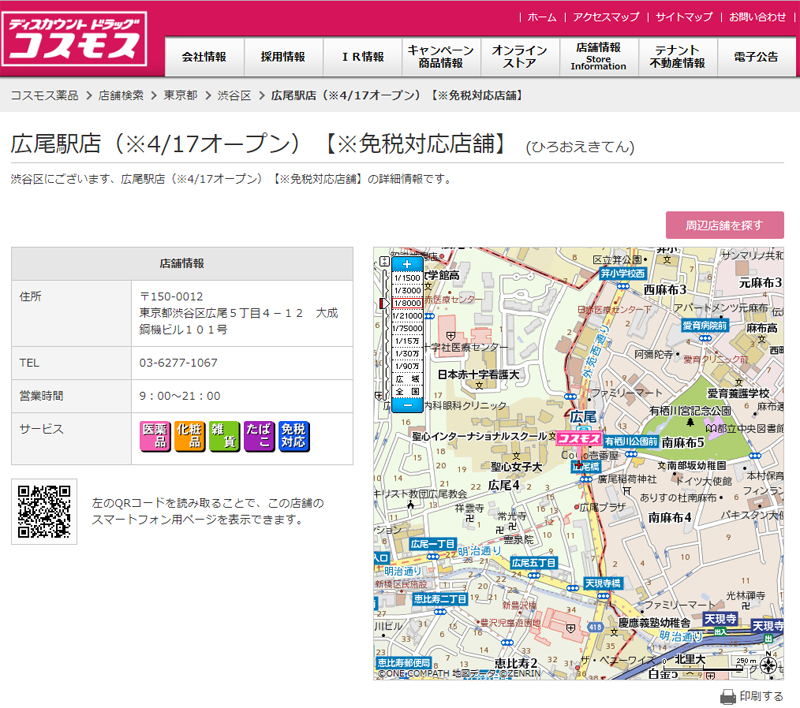 コスモス薬品/4月17日、関東進出1号店「広尾駅店」出店