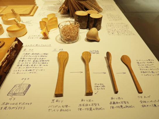 また、店舗の中央に位置する「仝(おどう)」と名付けられた吊り天井の下には、月替わりで企画を開催。全国各地から集められた今の工芸が並ぶ。オープニングを飾る11月は、構想段階のデザイナースケッチから試作品、産地での製造風景まで、商品が生まれるプロセスを一挙に展示する。