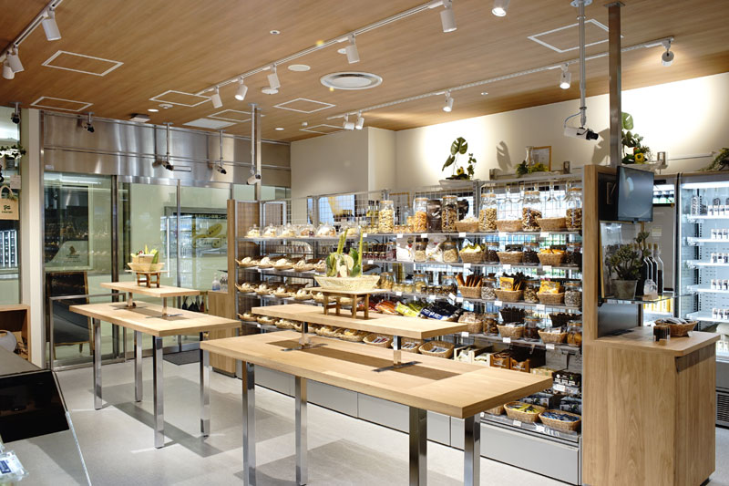 商品構成は、おにぎり・サンドイッチ・弁当・サラダ・スナックなど朝食、昼食、軽食向け商品を中心に展開。近隣や東京都内にある評判の飲食店等から仕入れたでき立ての魅力的な食料品を提供する。