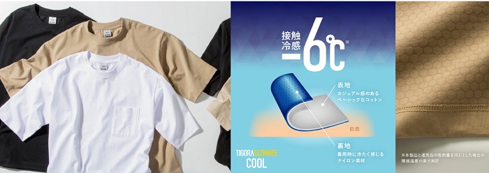商品例としては、ULTIMATEシリーズでは「ULTIMATE メンズ・レディス 半袖機能Tシャツ」(税込3289円)などをそろえる。「半袖機能Tシャツ」は、接触冷感機能を兼ね備えているTシャツで、表面にコットン素材、裏面には吸湿冷感機能を備えた特殊なナイロン素材を使用する。