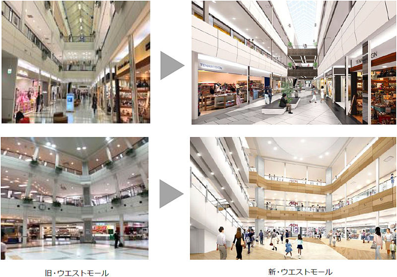 今秋のリニューアルでは、ファッションやライフスタイル型専門店など新規7店舗を含む、約30店舗を刷新。施設面では、ウエストモールを21年ぶりに居心地の良い都会的で洗練された空間へと一新する。