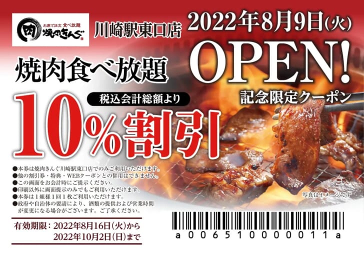 焼肉きんぐ/288店舗目「川崎駅東口店」10%割引クーポンも配布