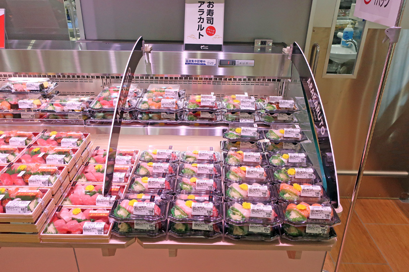 惣菜、寿司売場では、毎朝、自社工場で採る、こだわりの自社製天然だしを使った優しい味付けの惣菜商品や、厳選した食材を使った店内仕込みでの出来たて・作りたて商品、毎日のお買得品を提案する。