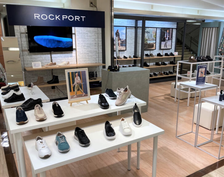 「ROCKPORT 京王百貨店新宿店」では、カジュアル・スポーツスタイルを中心に展開する。ロックポートが1983年に世界で初めてウォーキング専用シューズとして発売した「Prowalker(プロウォーカー)」コレクションの最新モデルや、安定した歩行運動をサポートする「Total Motion(トータルモーション)」コレクションのカジュアルシューズなど、都会的でアクティブなスタイルを楽しめるシューズをラインナップする。
