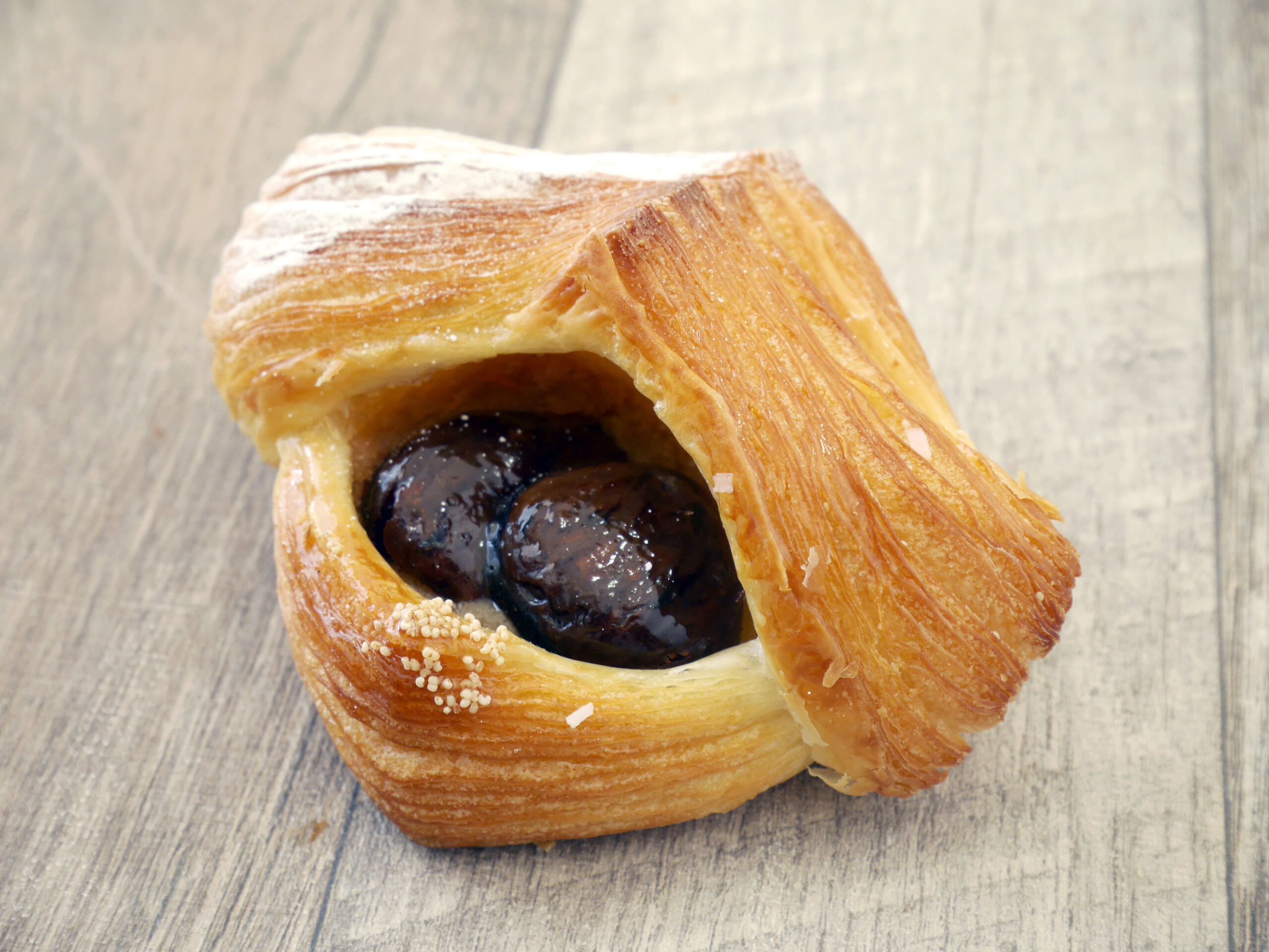 「川西阪急店」オリジナル商品のうち、「シャテーニュ」(税込324円)は、栗の甘露煮をのせて焼き上げたデニッシュ。