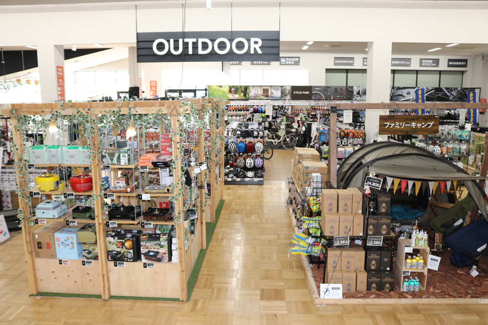 ライフスタイルの売場はレジャー用品とサイクル売場を拡大。洗剤や美容、衛生用品などを扱う日用雑貨売場は、売場を拡大しゴンドラの本数を約1.5倍に増やすことで品揃えの充実を図り、お客の買い物環境を改善した。