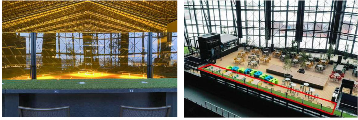 <醸造エリアの見えるレストラン/バッターズアイラウンジ>