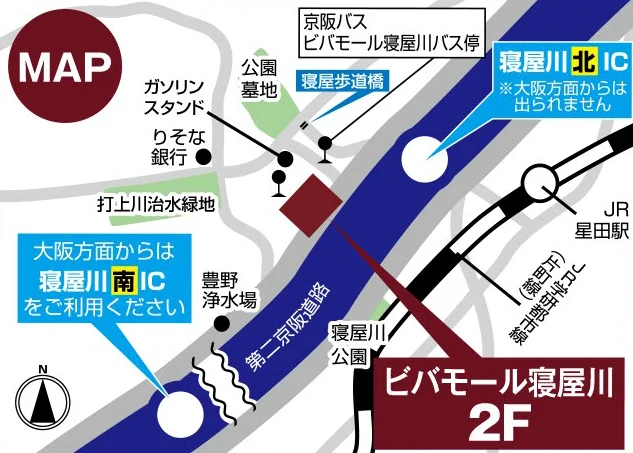 所在地:大阪府寝屋川市寝屋南2丁目22−22番1号 スーパービバホーム寝屋川店2階