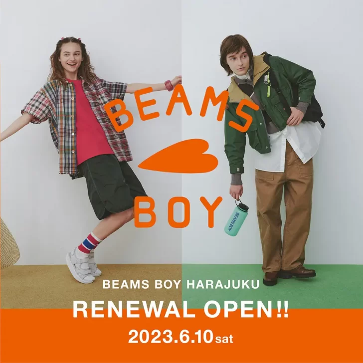 旧店舗から明治通り沿いを約70m離れた場所へ移転となり、約2倍の面積となった。「BEAMS BOY」のアイテムをフルラインアップでそろえ、店舗限定のスーベニアアイテムも用意。店内は、古材を使用したフローリングや赤レンガの壁などが特徴となり、エントランス右側手前に新設するイベントスペースでは、注目ブランドの打ち出しやインスタライブの配信、顧客参加型イベントなどを行う。これまで以上に豊富な品ぞろえやイベントを実施し、「BEAMS BOY」コミュニティのハブとなる旗艦店を目指す。