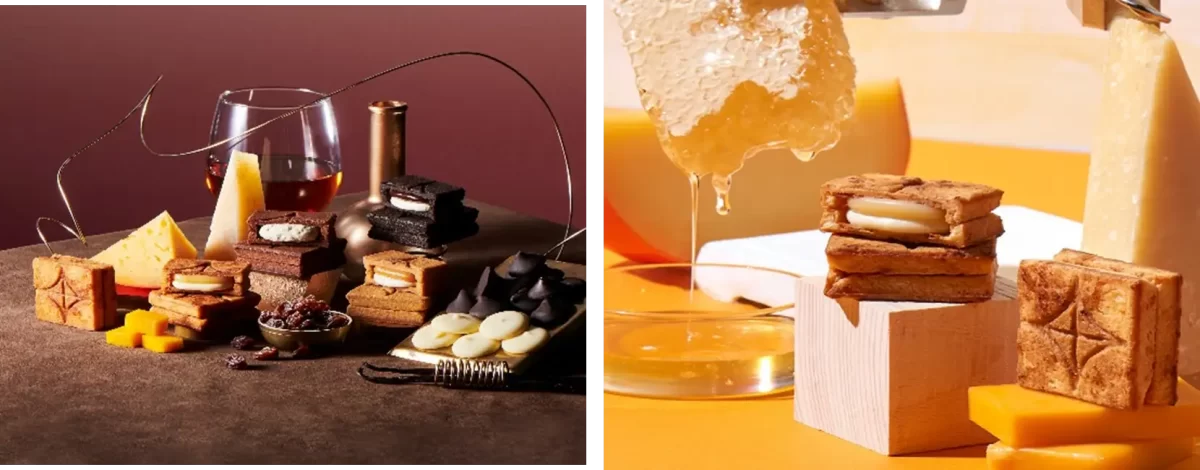 「PRESS BUTTER SAND GALLERY(プレスバターサンドギャラリー)」は、バターサンド専門店「PRESS BUTTER SAND」から誕生したプレミアムライン。バターサンドの象徴的な形状「45mm×45mmの正方形」をキャンバスに見立て、今までにないお菓子づくりを実験・実践する。
