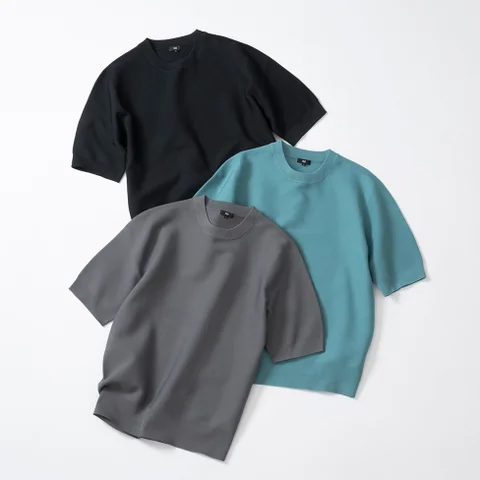 「ホールガーメント ニットTシャツ」(税込み7990円)は、同シリーズで初となるメンズ商品。アームホールの切り替えを太くしたデザインが特長で、スポーティーな装いにおすすめだという。