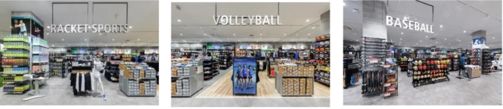 ウェアはアスレタ・プーマ・ナイキ・アンブロ等の人気ブランド中心に、部活生・ジュニア向け商品を集めた。タビオを中心に機能ストッキングの取り扱いも充実している。