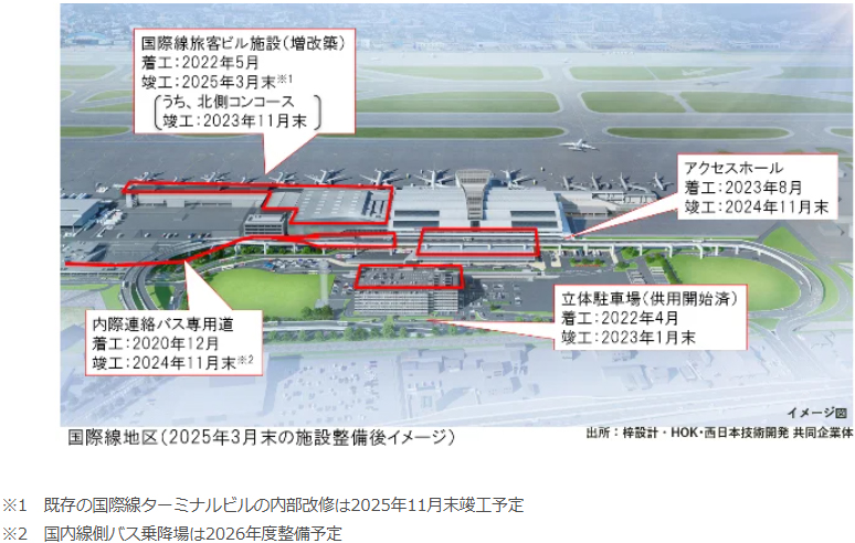 福岡空港は2025年3月28日、福岡空港国際線ターミナルビル等の増改築部分をグランドオープンする。