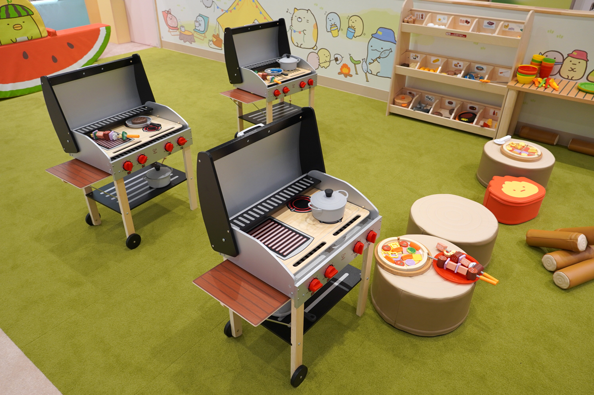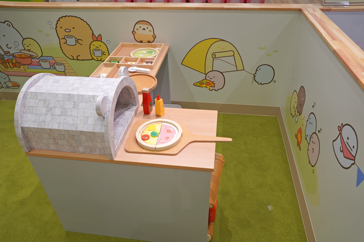 施設内では、すみっコたちとおそろいのエプロンを着て、ごっこ遊びを楽しむことが可能。親子や子ども同士でままごとを楽しめるという。