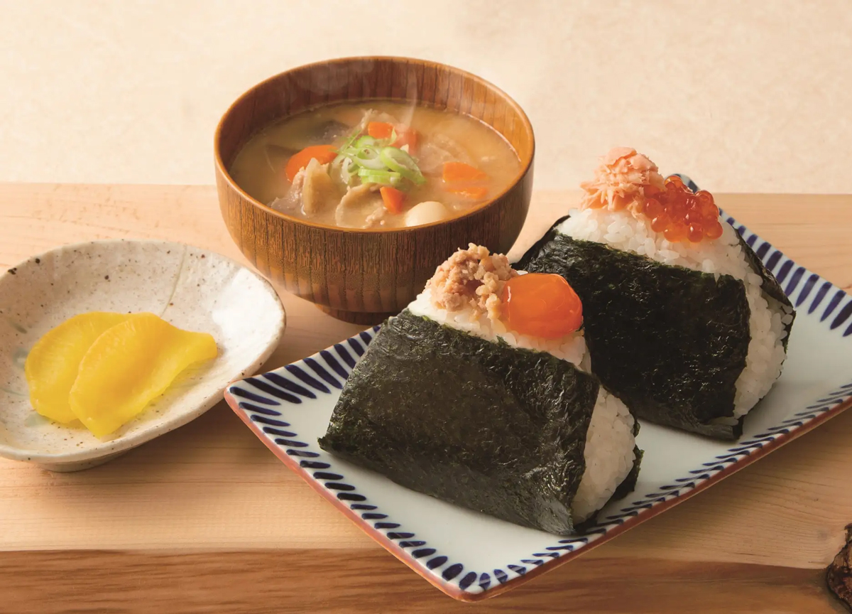 そのほか、好きなおにぎり2個に、具だくさんの豚汁、漬物がついた「おにぎりが選べる豚汁セット」(990円から)も用意している。