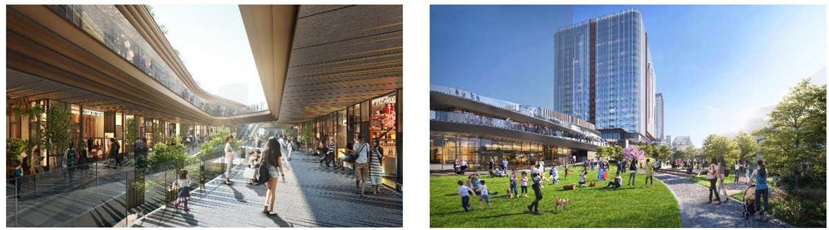 開放的な広場でのBBQや、壮大な眺望が広がるスパ・サウナなど多様な体験を提供し、新しいショッピングセンターの形を提案する。