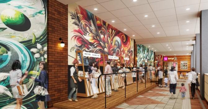 作画期間は11月17日~12月20日頃。期間中は作画風景を見学する事ができるという。このうち2階の通路には、ミューラルアートを施したコミュニティスペース(10月下旬完成)も設ける。通常時は休憩スペースとして、イベント開催時は販売やイベントスペースとして利用する予定だ。