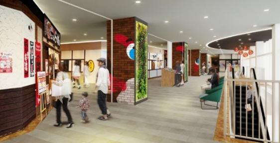 11月末までには、施設各所に休憩用いすや、携帯電話・PC充電用コンセント付カウンター席を設置する。飲食店フロアには、子ども用の遊び場も導入。トイレもバリアフリー化し、おむつ台を新設する。