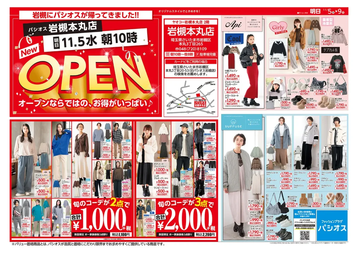 パシオスでは、トレンドを取り入れたカジュアルウェア、機能性・快適性を重視したインナーウェア、生活雑貨や服飾雑貨まで、家族全員の「衣」を支える多彩な商品をラインアップ。地域に根差した店舗づくりを目指し、毎日の暮らしに寄り添う提案を行っていく。