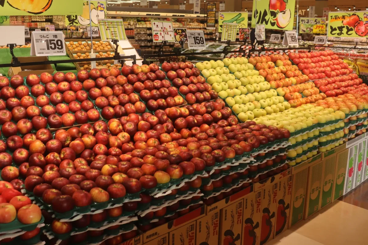 まず青果コーナーでは、旬の果物を豊富に並べ鮮度感を演出。ハーフカットなどの野菜も取り扱いを増やし、選びやすく使い切りやすいサイズ感で提供していく。