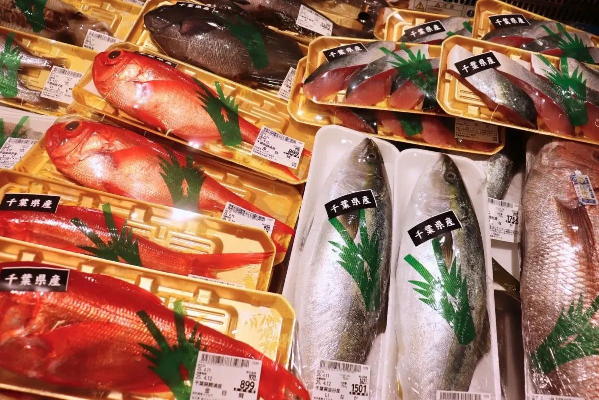 鮮魚コーナーでは、近隣の漁港から水揚げされた鮮度抜群の丸魚を取りそろえるほか、名産のあじ・くじらを活用した商材を豊富に展開する。
