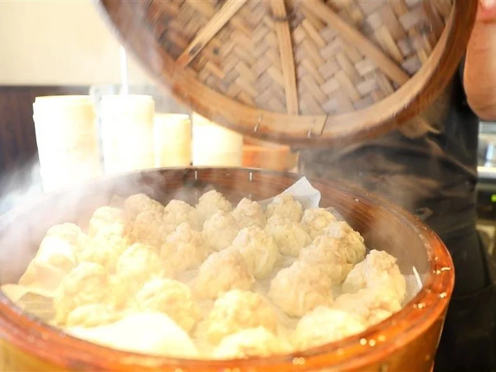 店内中央には、名物の「肉汁焼売」(1個150円)専用の蒸し場も設置。思わず目を惹く大きなせいろを配置し、どの席からも蒸し上げる様子を確認できる。ふたを開けた瞬間、湯気とともに立ちのぼる香りが店内を包み込むという。