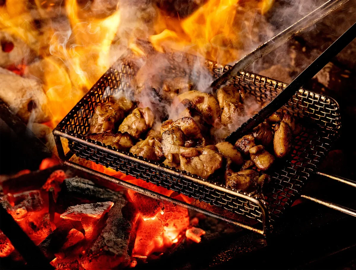 季節メニューで人気の「炭火炙り焼き」が吹田店限定でグランドメニューに登場。鶏肉を高火力の炭火で豪快に焼き上げ、肉汁をぎゅっと閉じ込めた、炭火の香ばしさと旨みがあふれる一品となる。