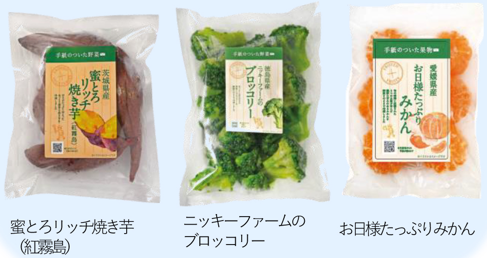 青果売場では産地直送の野菜を豊富にラインアップするほか、「手紙のついた野菜と果物」が冷凍食品として登場。生産者こだわりの商品がいつでも気軽に楽しめる。