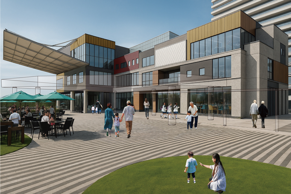 施設内にはカフェや飲食店、日常のニーズに応える量販店、金融機関、クリニックなど多様なサービスを提供する。