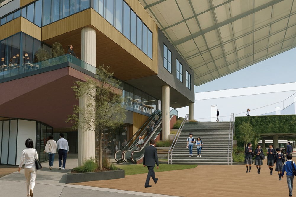 泉ケ丘駅前に商業施設、30階建ての分譲タワーマンションを建設するとともに、駅前南コンコースから2階デッキへの動線を整備する大階段の新設など一体に整備する。