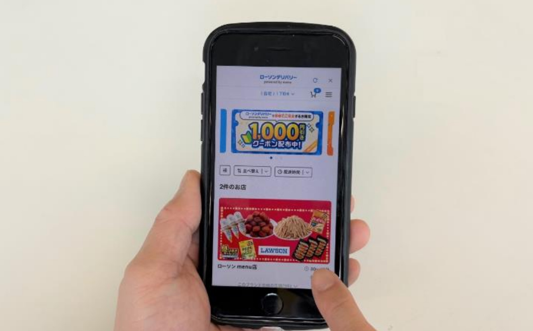 ローソンアプリから注文できるデリバリーサービスで、取扱商品数は3000品目。1都3県や北海道、大阪府、福岡県など12都道府県のローソン店舗約1800店で順次開始する。今後も他エリアへの拡大を進めていく。