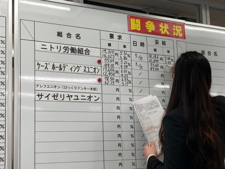 UAゼンセンが3月15日に発表した速報値によると、ニトリ労働組合が正社員組合員1人平均賃上げ総額1万8186円(5.0%)、パートタイマー時給53.6円(5.01%)で妥結した。