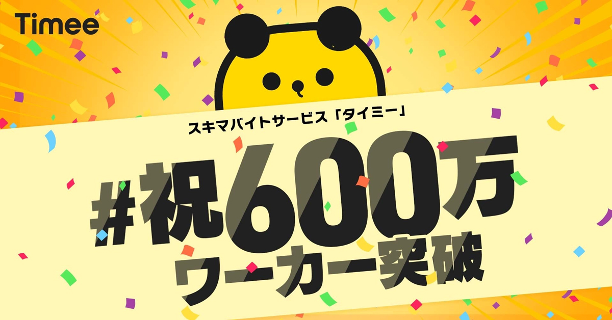 タイミーは10月23日、スキマバイトサービス「タイミー」の累計ワーカー数が600万人を突破したと発表した。