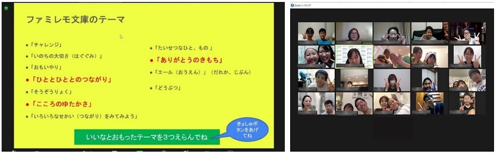 プレゼントとして贈る本やDVDを決める際の基準として、参加メンバーの投票によって、「人と人とのつながり」「ありがとうのきもち」「こころのゆたかさ」の3テーマを決定した。