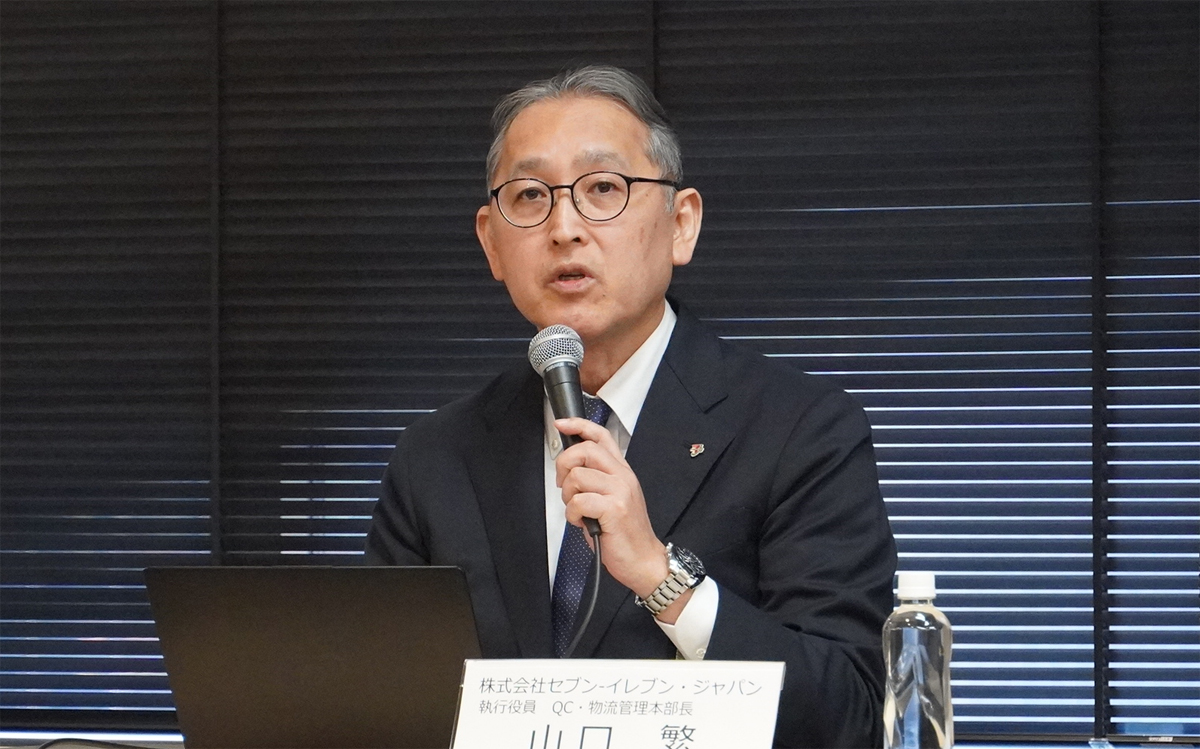 12月1日、3社は都内で共同発表会を開催。セブン-イレブン・ジャパン執行役員QC・物流管理本部長の山口繁氏は今回の取り組みの背景や狙いについて次のように説明した。