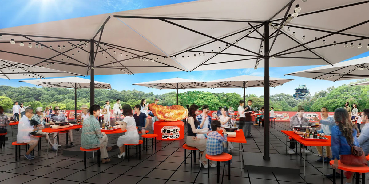 今年の4~7月には「大阪グルメEXPO2025」に体験型店舗として「ギョーザステーション」を開催。テーブルに用意されたガスコンロとフライパンを使って、顧客自身が「ギョーザ」を調理。羽根全体に焼き色を付けてから、皿をかぶせ、フライパンをひっくり返して盛りつけるという一連の流れを体験してもらった。